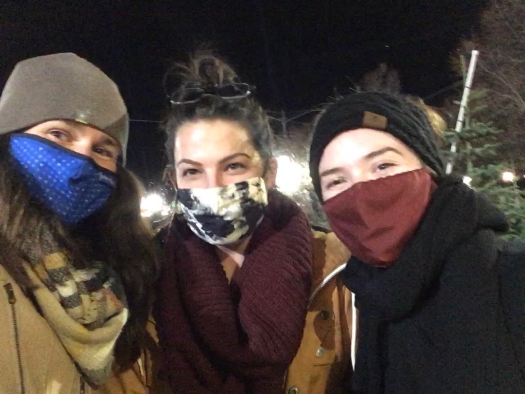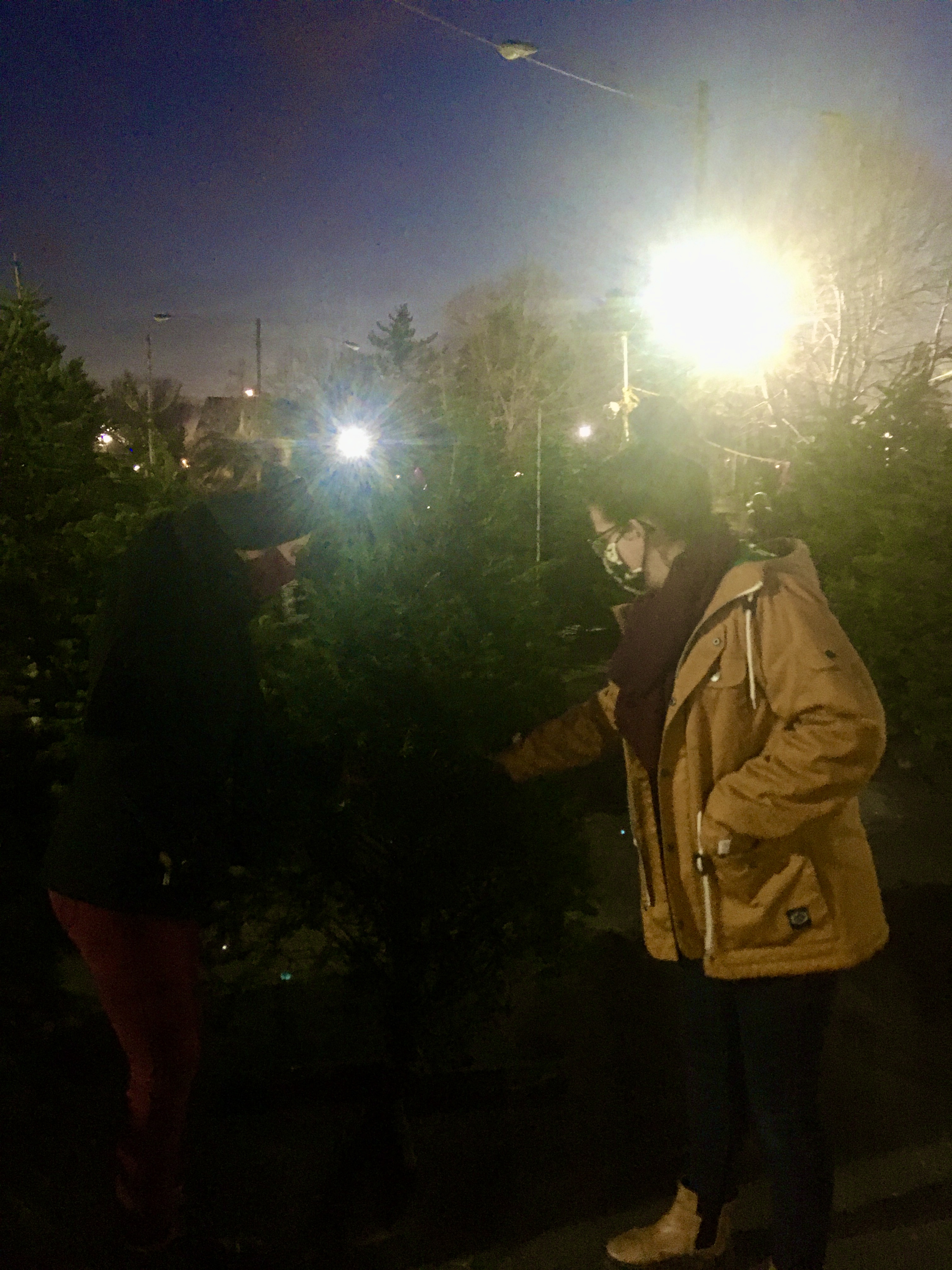 Austen got home from work then Victoria and I grabbed our coats and masks and out the door we went. We got to the lot and and as soon as we all stepped out of the car we all took in a deep breath from the tree lot. We walked around the lot smelling the trees, possibly hugging a few of them as we eventually tried to narrow down between two trees. There was the Chubby boy that we all really liked and then we came along the black spruce.