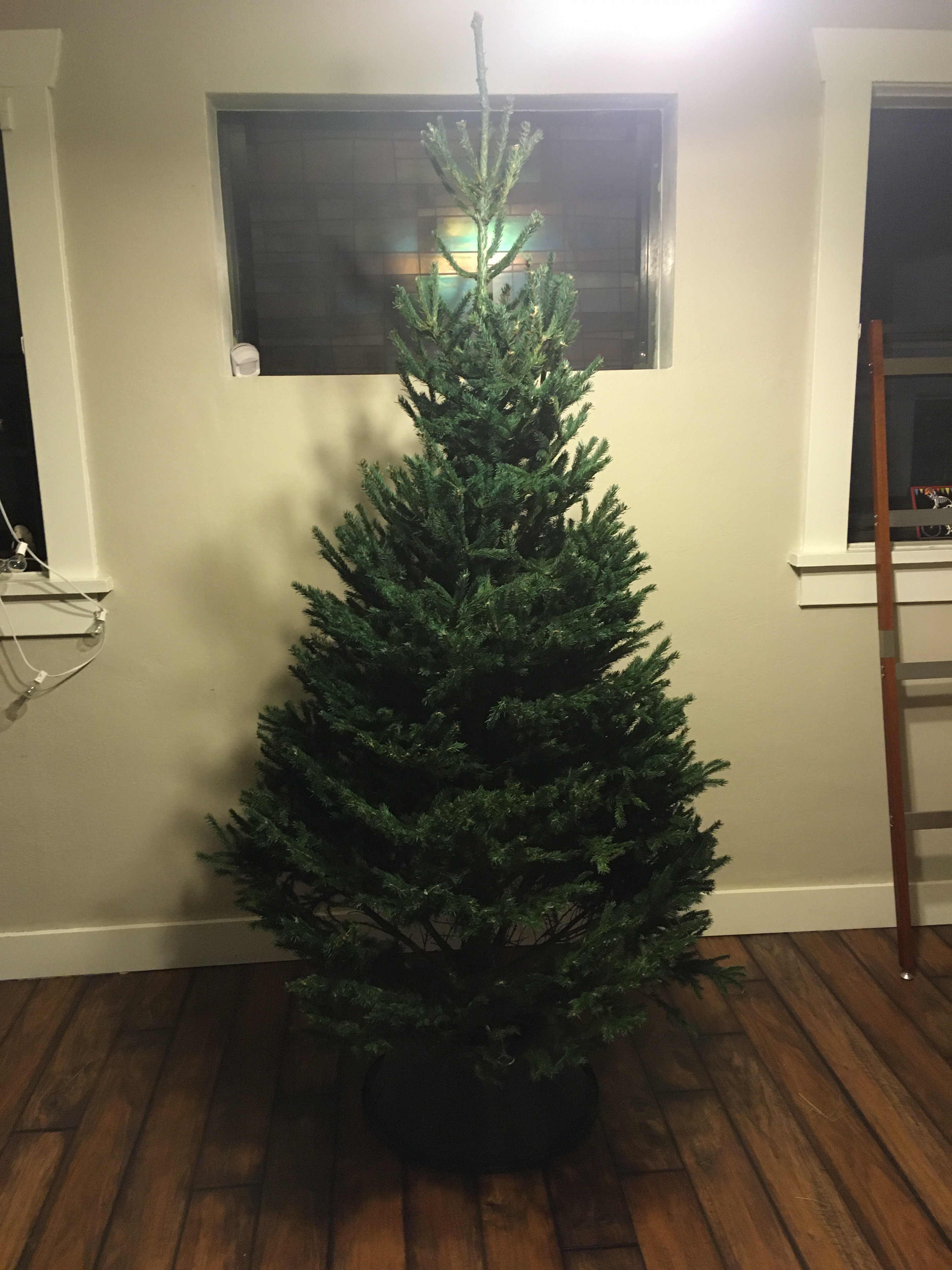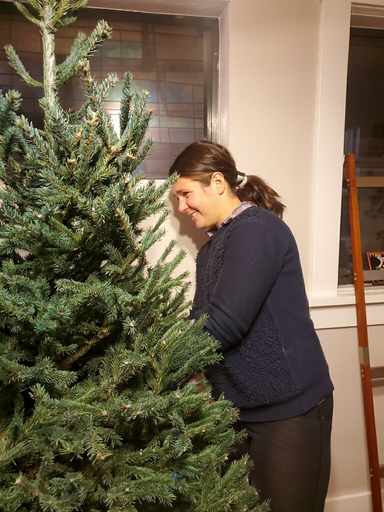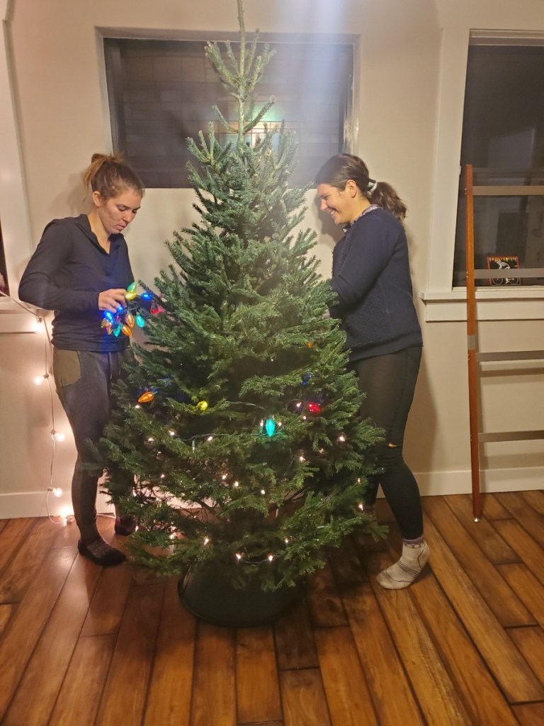 We ended up taking home the Black Spruce. We got him inside and at his new designated place and got him some water and strung up the lights. As we got him situated and dressed with the lights we started thinking of a name for him.