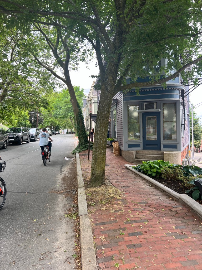 We rode the bikes along Benefit St. down to India Point Park. I had wanted us to go and ride along the East Bay Bike Path. The bikes the two city bikes only allow you to go up to a certain radius of town. So we turned back through town all three of us getting hungry for lunch.