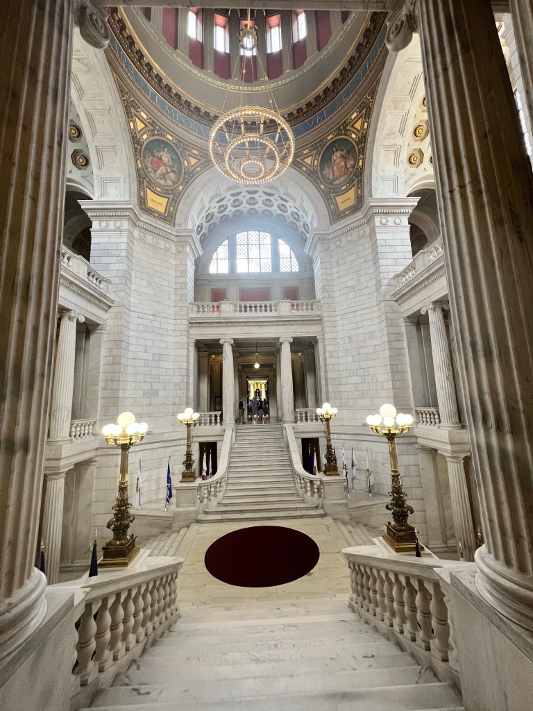 This was the first State Capitol that I have been inside of. You used a QR code to access for an audio tour. You learned about the history of Providence and the state of Rhode Island and a little of the construction of the State Capitol.