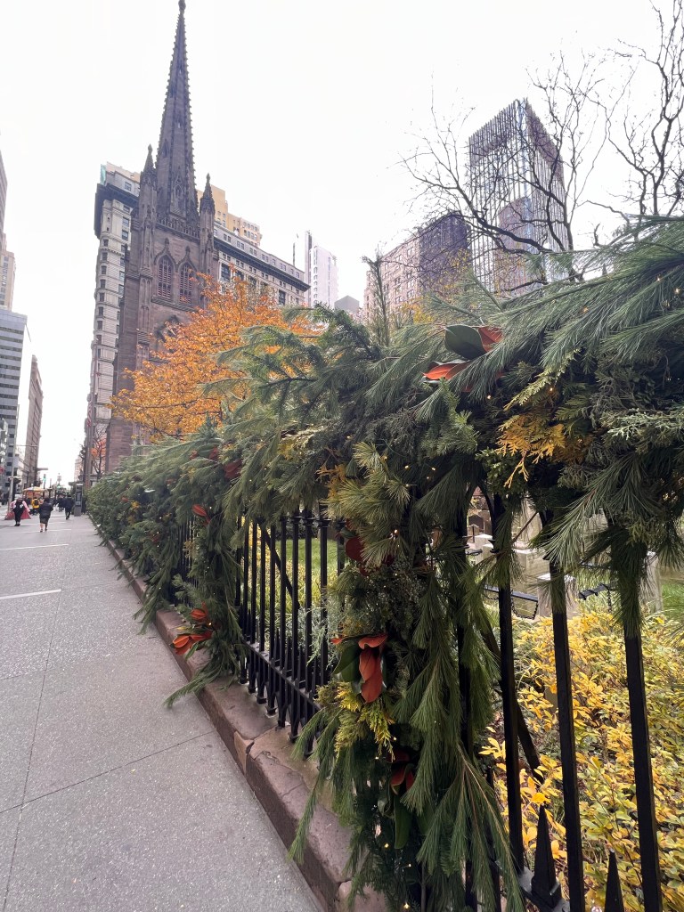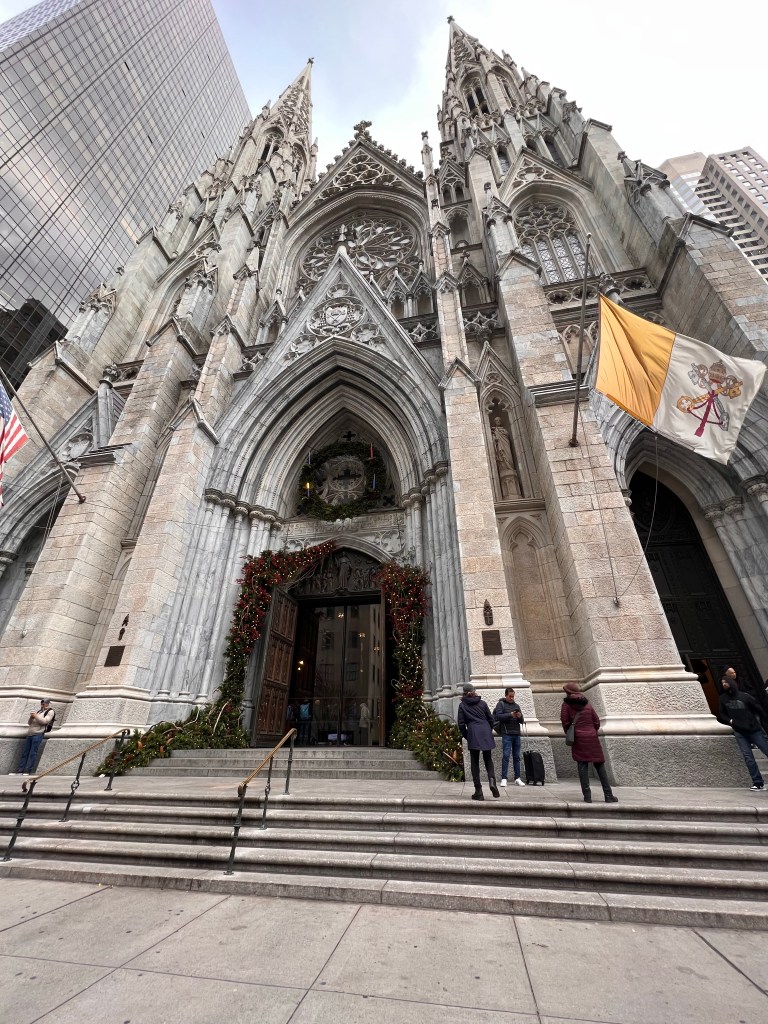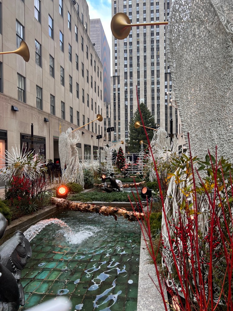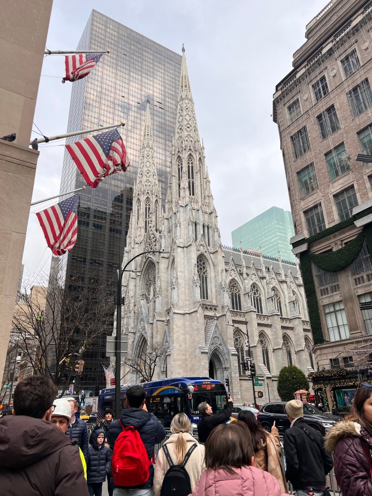Our next destination was The Rockefeller Plaza. We stopped outside of the Chrysler Building and made our way up the busy NYC streets. Mom wondering where I was taking her has we did a big loop right back on accident to Grand Central. I just really felt compelled to the station. We eventually got back on track and made our way stopping outside of Saks 5th Avenue for the Christmas windows also while stopping outside of St. Patrick’s Cathedral before heading across the street to the Rockefeller Plaza Christmas Tree.